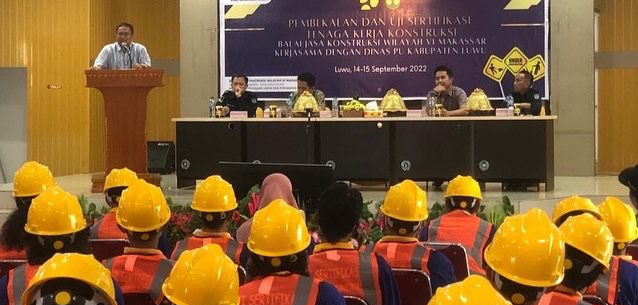 Sebanyak 100 pekerja konstruksi dari Kabupaten Luwu mengikuti pelatihan selama dua hari. Peserta akan diberikan sertifikat setelah melewati uji sertifikasi secara gratis.