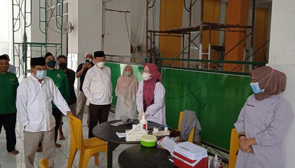 Usai salat, JK berjalan didampingi sejumlah pengurus Masjid Al-Markas dan beberapa orang lainnya ke tempat pelaksanaan Donor Darah tersebut.