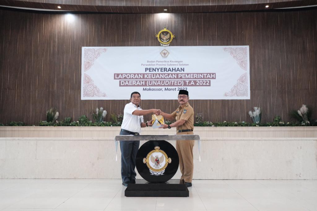 Penyerahan ini diberikan kepada Kepala Perwakilan BPK Provinsi Sulawesi Selatan, Amin Adab Bangun yang ditandai dengan penandatanganan Berita Acara Serah Terima (BAST) Penyerahan LKPD Unaudited TA 2022.