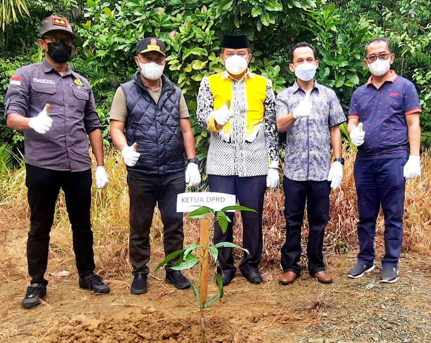 REPUBLIKNEWS.CO.D, LUWU TIMUR- Ketua DPRD Luwu Timur, Aripin menanam pohon usai mendampingi Bupati Budiman dalam peresmian rumah jabatan ketua Pengadilan Negeri Malili dan rumah mess Kejaksaan Negeri Malili yang dilakukan di Baruga Land Mark Luwu Timur, Minggu (13/2/2022).