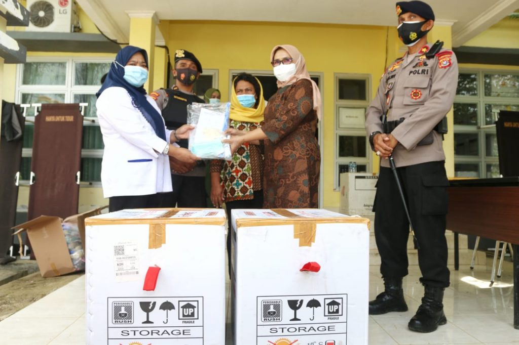Distribusi vaksin kali ini juga diikutsertakan dengan alat pendukung lainnya seperti alat pelindung diri (APD), jarum suntik vaksin, dan alkohol swab.