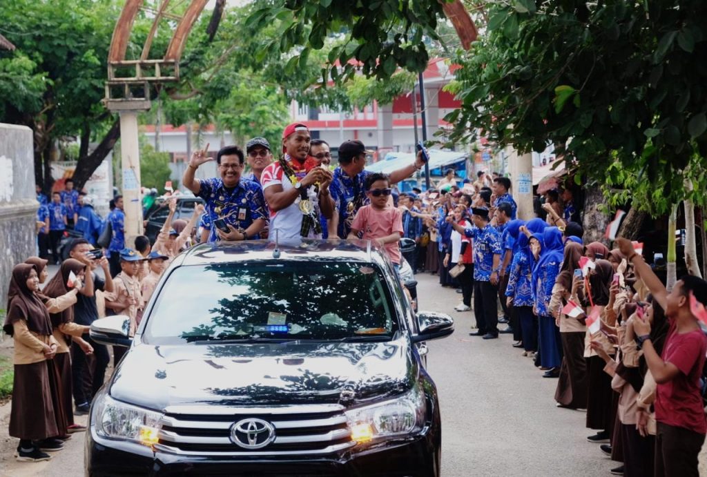 REPUBLIKNEWS.CO.ID, GOWA – Anwar Tarra, Atlet Dayung yang berhasil menyumbangkan empat medali emas di ajang Sea Games 2019 di Filipina, disambut meriah oleh Pemerintah dan Warga Kabupaten Gowa, Jumat (13/12/2019) kemarin.