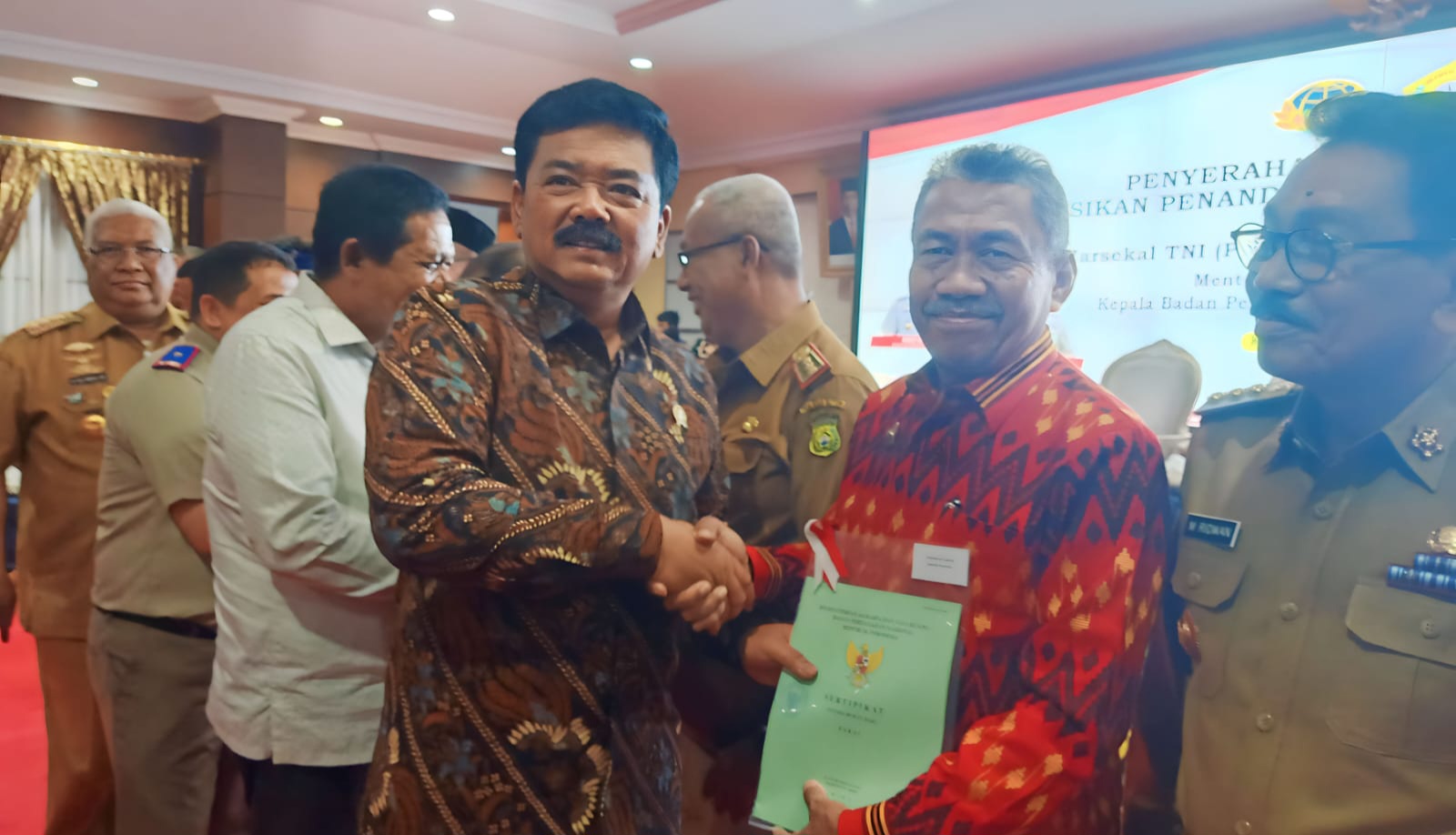 “Adapun dari total sertifikat yang diserahkan di antaranya terdapat Sertifikat Hak Pakai bagi pemerintah daerah, Sertifikat Hak Pakai bagi pemerintah desa, Sertifikat Hak Pakai bagi pemerintah provinsi, serta sertifikat aset Barang Milik Negara (BMN),” pungkasnya. (*)