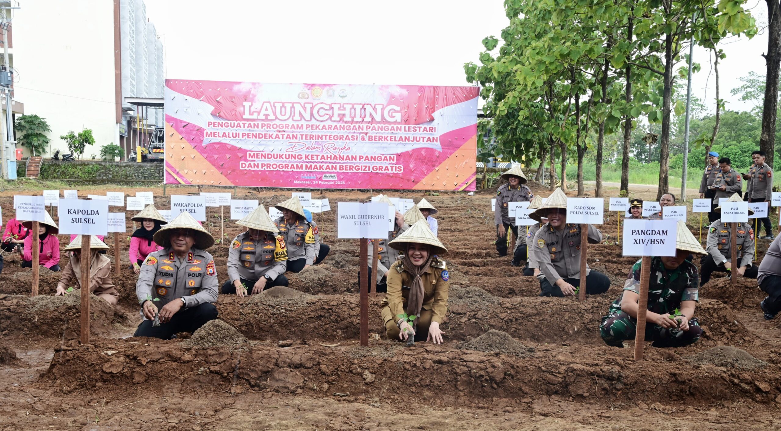REPUBLIKNEWS.CO.ID, MAKASSAR – Launching Penguatan Program Pekarangan Pangan Lestari (P2L) melalui pendekatan terintegrasi dan berkelanjutan dalam rangka mendukung Ketahanan Pangan dan Program Makan Bergizi Gratis (MBG) dilaksanakan di pekarangan lapangan Polda Sulsel, Makassar, Senin (24/2/2025).