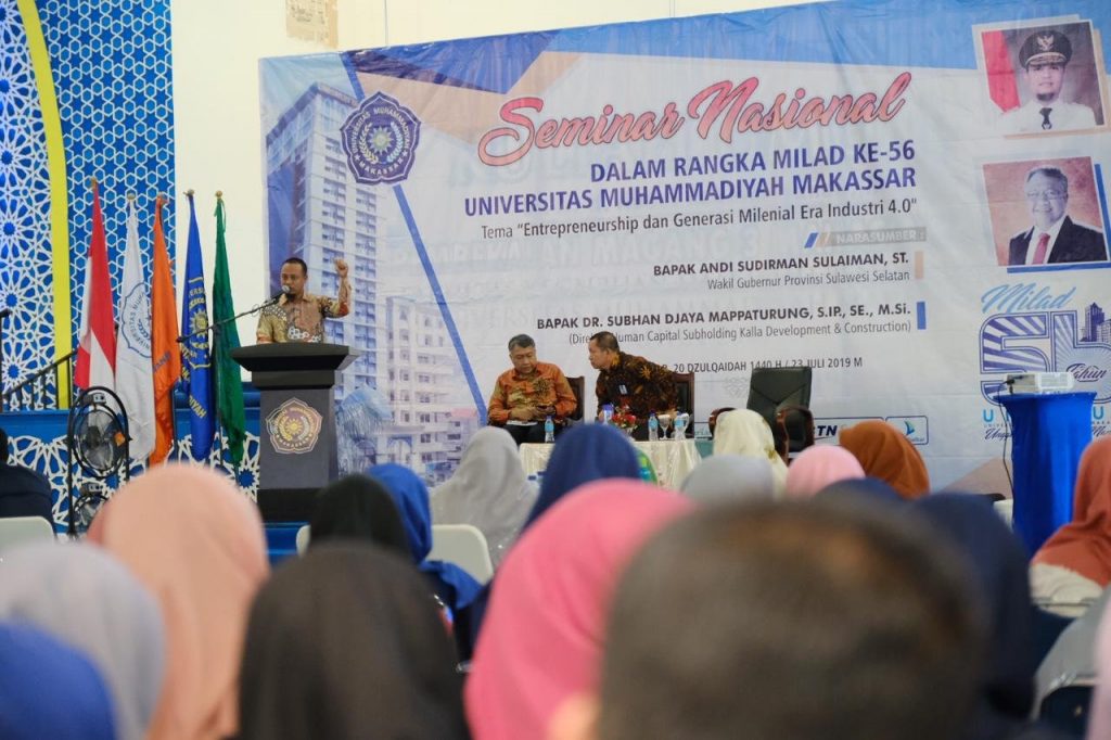 Seminar Nasional ini menghadirkan Wakil Gubernur Sulsel Andi Sudirman Sulaiman, sebagai pembicara dengan memapar materi membangun kemitraan antara Pemerintah Provinsi Sulsel dengan perguruan tinggi melalui kewirausahaan menghadapi Era Industri 4.0.