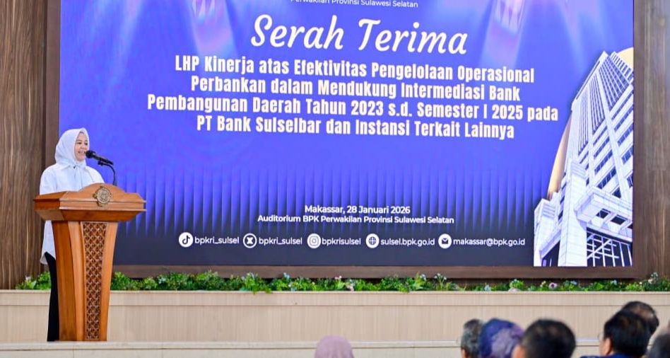 Hal itu disampaikan saat menghadiri Serah Terima Laporan Hasil Pemeriksaan (LHP) Kinerja atas efektivitas kegiatan operasional bank dalam mendukung fungsi intermediasi perbankan, di Auditorium Lantai 2 Kantor BPK Perwakilan Provinsi Sulsel, Rabu (28/1/2026).