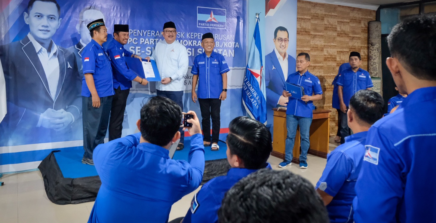 REPUBLIKNEWS.CO.ID, MAKASSAR – DPD Partai Demokrat Sulawesi Selatan menyerahkan SK pengurus DPC secara serentak. Penyerahan dilakukan oleh Ketua DPD Demokrat Sulsel, Ni’matullah Erbe yang didaulat mewakili Ketua Umum DPP Partai Demokrat, Agus Harimurti Yudhoyono (AHY).