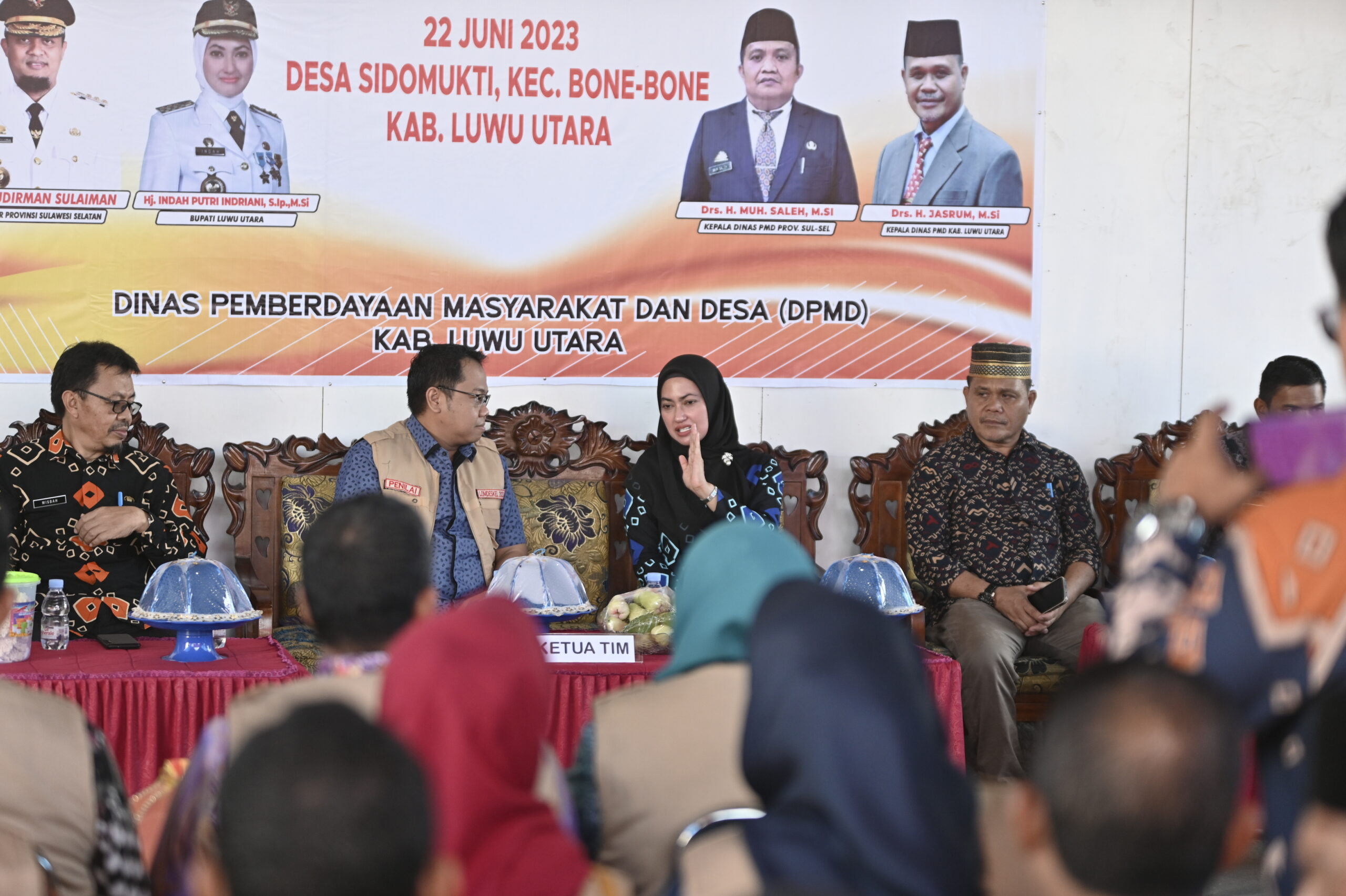 REPUBLIKNEWS.CO.ID, LUWU UTARA — Tim penilai Lomba Desa dan Kelurahan tingkat Provinsi Sulawesi Selatan Tahun 2023 melakukan kunjungan ke Desa Sidomukti untuk melihat inovasi dan potensi desa Sidomukti. Kedatangan tim penilai disambut langsung Bupati Luwu Utara, Indah Putri Indriani, Kamis (22/6/2023) di Kantor Desa Sidomukti, Kecamatan Bone-Bone.