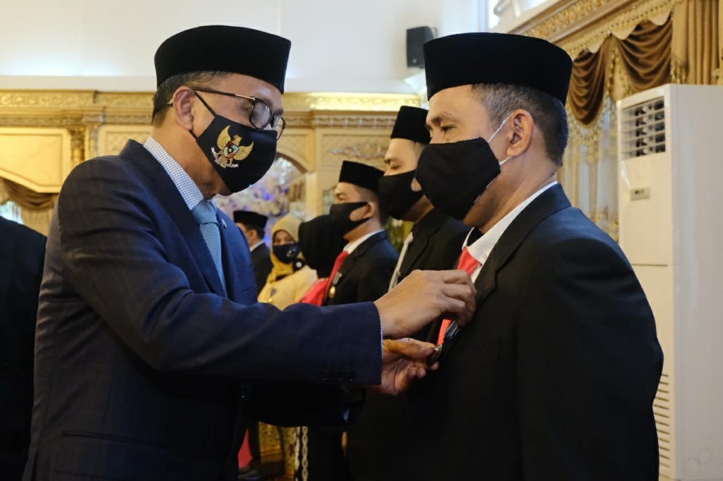REPUBLIKNEWS.CO.ID, MAKASSAR – Gubernur Sulawesi Selatan Prof. Nurdin Abdullah, mewakili Presiden Republik Indonesia Ir Joko Widodo, menyerahkan tanda kehormatan Sayta Lencana kepala Aparatur Sipil Negara (ASN) lingkup Pemprov Sulsel, di Rujab Gubernur, Kamis (13/08/2020).