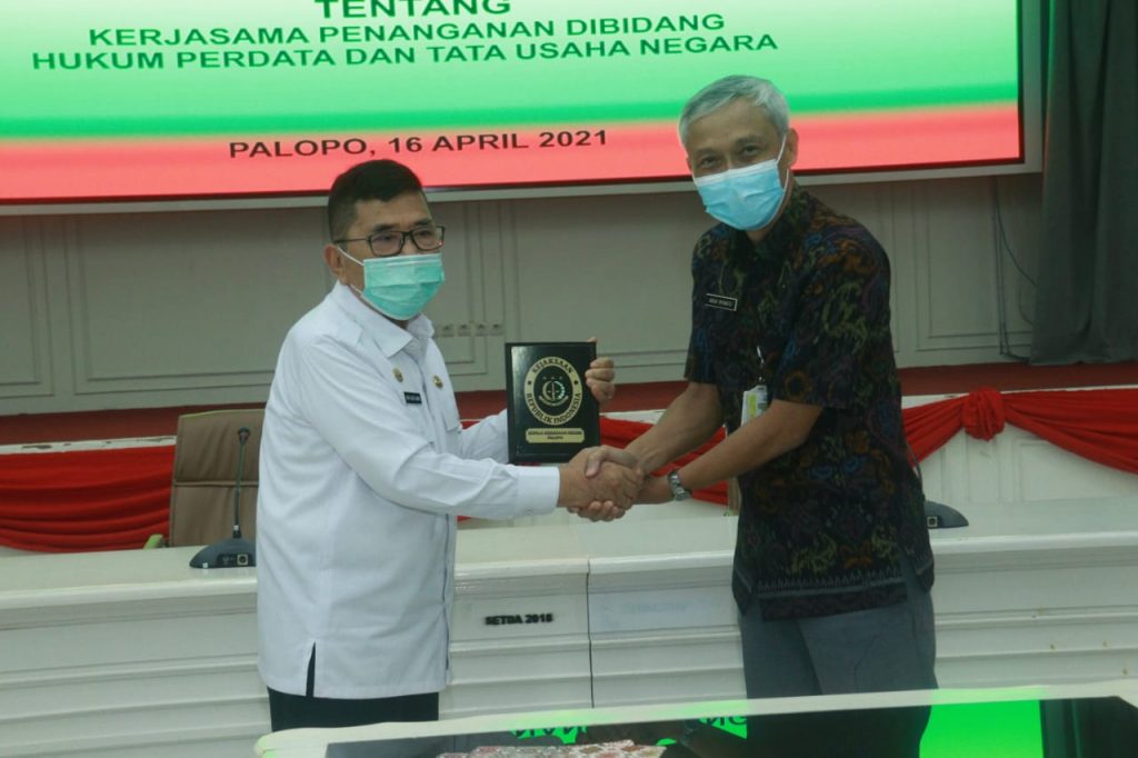 REPUBLIKNEWS.CO.ID, PALOPO – Wali Kota Palopo Judas Amir bersama Kepala Kejaksaan Negeri (Kajari) Kota Palopo menandatangani MoU kerjasama penanganan Hukum Perdata dan Tata Usaha Negara di Ruang Pertemuan Ratona, Kantor Wali Kota Palopo, Jumat (16/4/2021).