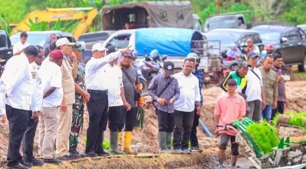 “40.000 hektare ini adalah klaster pertanian modern. Semua menggunakan teknologi seperti yang kita lihat. Jadi ini pertanian modern betul-betul. Nanti bisa menjadi contoh di tempati-tempat lain. Tanam, panen hingga mengolah pakai alat,” ujarnya.