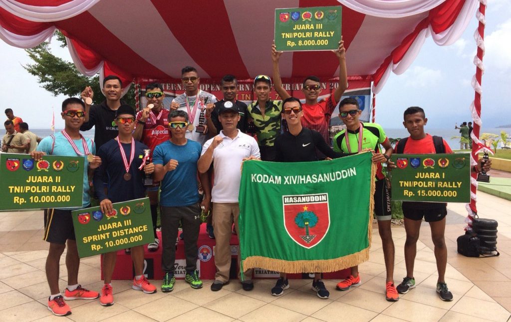 “Kami mengucapkan Terima Kasih kepada Bapak Pangdam XIV/Hsn, Kasdam, As ops selaku Penanggung jawab Cabor Oramil dan As pers selaku Penanggung jawab Cabor Oraum yg telah memberikan kepercaan kembali kepada Tim Triathlon kodam XIV/Hsn untuk mengikuti Lomba2 Triathlon diluar wilayah Kodam Hasanuddin dan kami akan berusaha lebih baik lagi kedepannya,” ujarnya.